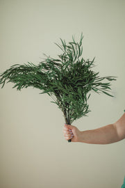 A perfect in between option with a lot of fullness and character. The leaves are smaller than weeping willow and longer than parvifolia. The style is almost feathery yet looks nice and full in a vase.