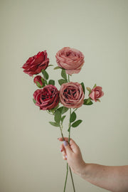 Large rose stems captivate with their muted tones, offering a subtle yet elegant appeal. The varying heights of the blooms create a striking depth, making each arrangement visually stunning and perfectly balanced for a sophisticated ambiance.